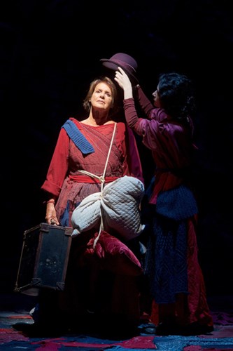 Quello di scene e costumi è il lavoro di Antonio Marras, con stracci veri recuperati a cui ha dato una tinta di fondo rosso mattone. Credo che volesse rendere il senso dell’Africa, con colori forti però sbiaditi dal tempo, passati attraverso corpi e poi raccolti. Anche le balle su cui ci sediamo sono fatte di vestiti, poi c’è la scena finale in cui io divento un cinico becchino e sulla spiaggia raccolgo abiti abbandonati da quelli che sono arrivati, per rivenderli. È il momento più amaro dello spettacolo. Non se ne esce rincuorati, ma con un pugno allo stomaco. È molto forte, il pubblico ci ringrazia, però il colpo arriva.
