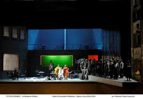 Peter Grimes, tratto da una novella inglese del tardo Settecento, con un libretto di Montagu Slater, è “British” dall’inizio alla fine, nonostante rappresenti una rivoluzione che nel 1945 ha inciso profondamente sul teatro in musica della seconda metà del Novecento. La vicenda è nota. Nel 1830 o giù di lì, in un piccolo gretto e pettegolo, borgo marinaro, il pescatore Peter Grimes è un “diverso” (Britten, ricordiamolo, era omosessuale, religioso osservante e obiettore di coscienza durante la seconda guerra mondiale). Il suo mozzo muore in mare. Viene assolto dall’accusa di averlo ucciso, ma nel villaggio lo si considera pervertito e sadico. Soltanto la maestra (una vedova) gli dà fiducia e il pescatore spera di avere un futuro con lei. Avviene, però, un secondo incidente: un altro mozzo muore in circostanze difficili da spiegare. A Peter non resta che mettersi sulla propria barca e partire per sempre. Suicidandosi in mare. Mentre nel borgo torna la calma perbenista. Questa scarna vicenda di solitudine e incomprensione è arricchita non solo da un testo stringato ed efficace ma da una partitura ricchissima: sei “interludi marini” separano le varie scene e la vocalità alterna declamato con ariosi di grande lirismo, nonché concertati di spessore (sia a quattro voci femminili sia di tutta la compagnia). Benjamin Britten dedicò gran parte della propria vita e del proprio lavoro ad individuare nuove forme di teatro in musica per il Novecento, ed i secoli successivi, nella convinzione che la forme ottocentesche e della prima metà del ventesimo secolo, non fossero più ‘sostenibili’ in epoca di accresciuta concorrenza di altre forme di spettacolo (cinema, televisione) e di aumento dei costi reali per maestranze tecniche e artistiche.