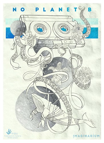 Di fatto alla presentazione hanno partecipato gli artisti Davide Giannoni e Francesca Pasquinucci, che hanno realizzato il manifesto No Planet B (nella foto) che va a illustrare in maniera efficace e immediata lo spirito del progetto. Durante la presentazione è stata più volte richiamata l’Enciclica Laudato sii di Papa Francesco, molto attenta ai valori ambientali. Hanno dato infine il loro saluto il senatore Roberto Rampi, in collegamento da Strasburgo, e Maria Cristina Finucci, architetto e noto artista che ha fondato, nel 2013, il Garbage Patch State, un’isola di 700mila metri quadri nel Pacifico completamente ricoperta di plastica. La Finucci ha ricordato come la vita sul pianeta sia legata all’ambiente e ad un armonico utilizzo delle risorse, concludendo: “L’arte è uno dei veicoli più importanti per comunicare questi valori”.