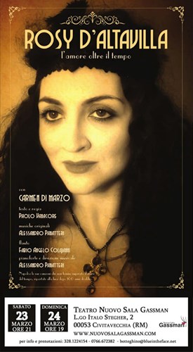 La prima volta che è andata in scena Rosy D’Altavilla è stato a novembre del 2016 alla Bottega degli Artisti di Roma e da quel momento non si è più fermata. Il monologo nato dalla fantasia di Paolo Vanacore, che ne cura anche la regia, è interpretato da Carmen Di Marzo attrice talentuosa nata alle falde del Vesuvio. Lo spettacolo ha riscosso così tanto successo da spingere il regista a scrivere un libro “La vera storia di Rosy D’Altavilla” edito da Giuseppe Bellone (Lilit Books), invertendo quello che solitamente accade: da un libro nasce lo spettacolo, in questo caso e per volere del pubblico è successo il contrario. Prossime date, 23-24 marzo al Teatro Nuovo Sala Gassman di Civitavecchia.