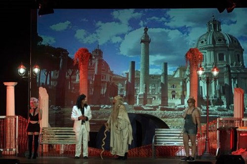 Roma è immensa, ma dall’Eur sembra ancora più grande. Sopra la terrazza del Palazzo dei Congressi dove è in scena la kermesse “Teatro Festival” ci si sente davvero piccolini. Entrare nell’area teatro e vedere tutti quei posti a sedere vuoti, in fila, viene quasi lo sconforto, pensando: ma si riempiranno? Con la mano del Signore, sì, proprio di “Quel” Signore alluso nel titolo, il 12 e 13 luglio si è riempito tutto lo spazio. Milleduecento persone a sera in attesa di vedere lo spettacolo di Pablo e Pedro, che pur avendo i nomi dei due apostoli, si sono spinti ben oltre interpretando addirittura “Il Signore e l’Arcangelo”. I due comici sono una sicurezza e i loro spettacoli si confermano un successo dietro l’altro.