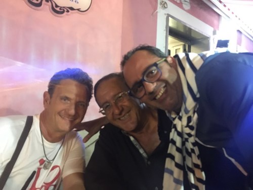 Ed è Antonio a seguire le orme del padre, nel vero senso della parola. Stessa stazza, stessa professionalità, stessa bontà, stessa competenza. Fuma uguale al padre (tante sigarette), macina tantissimi chilometri per passare da una piazza all’altra. La Calabria è una regione molto bella, ma lunga. Tra mare e monti si scorgono località molto affascinanti, a volte difficili da raggiungere. Antonio Scarpelli è uno di quegli organizzatore che già dalla prima accoglienza ti offre il caffè, anche più di uno a dire il vero. Ti vizia con mille attenzioni e dopo lo spettacolo mentre negli altri posti d’Italia ti offrono la frutta, il panino o un cappuccino in autostrada, con lui, si finisce in un ristorante a mangiare uno stinco di maiale accompagnato da un contorno di polpette di melanzane e una bruschetta con la ‘nduja. Anche alle 3 di notte.