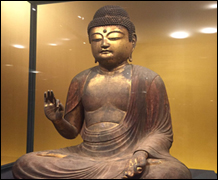 È il volto mite e adolescenziale di Shaka Nyorai ad accogliere con la sua grazia i visitatori della mostra “Capolavori della scultura buddhista gi...