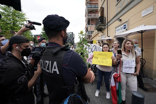 A margine della visita torinese, si registra una contestazione dei No-vax. Una trentina di manifestanti, con striscioni e megafoni, presidia l’ingresso dell’Hub vaccinale. “Giù le mani dai bambini”, “I bambini non sono cavie”, sono alcuni dei cartelli mostrati dai dimostranti all’arrivo dell’auto di Figliuolo. Un cordone di agenti di polizia impedisce agli attori della protesta di entrare in contatto con il commissario. Una manifestante legge, utilizzando un megafono, alcuni articoli della Costituzione. Viene scandito lo slogan: “Norimberga, Norimberga”, già sentito nei giorni scorsi in occasione della manifestazioni contro il Green pass. Di fronte ai manifestanti, dall’altra parte della strada all’ingresso dell’Hub, u