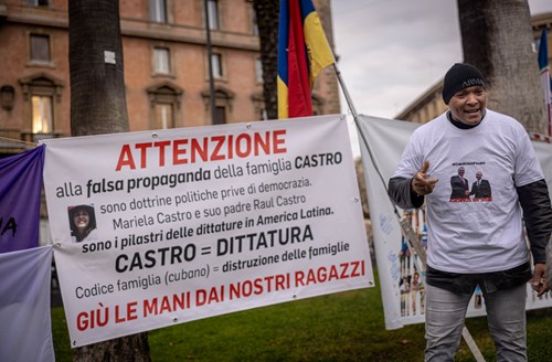 “Attenzione alla falsa propaganda della famiglia Castro: sono dottrine politiche prive di democrazia”. Questo è uno degli striscioni esposti ieri in piazza Cavour, a Roma, per protestare contro la visita nel nostro Paese di Mariela Castro, nipote di Fidel e figlia di Raul. Una posizione, questa, manifestata da cittadini della comunità venezuelana, cubana e boliviana che si sono date appuntamento nella Capitale. Cinzia Pellegrino, coordinatore nazionale del dipartimento Tutela vittime di Fratelli d’Italia, ha detto insieme a e Maylin Barrera Rodriguez, portavoce del Movimento “Las guerreras”: “La figlia di Raul e nipote di Fidel, espressione di un regime dittatoriale, viene in un Paese europeo a parlare di diritti umani e ideologie libertarie, credendo in questo modo di nascondere le violazioni delle libertà e le violenze sulla popolazione perpetrate dal regime castrista. Saremo presenti in tutte le piazze d’Italia in cui la deputata Castro andrà a propagandare le sue false dottrine politiche, per ricordare quanto invece siano prive di democrazia e riconducibili ai pilastri ideologici delle dittature dell’America Latina”.